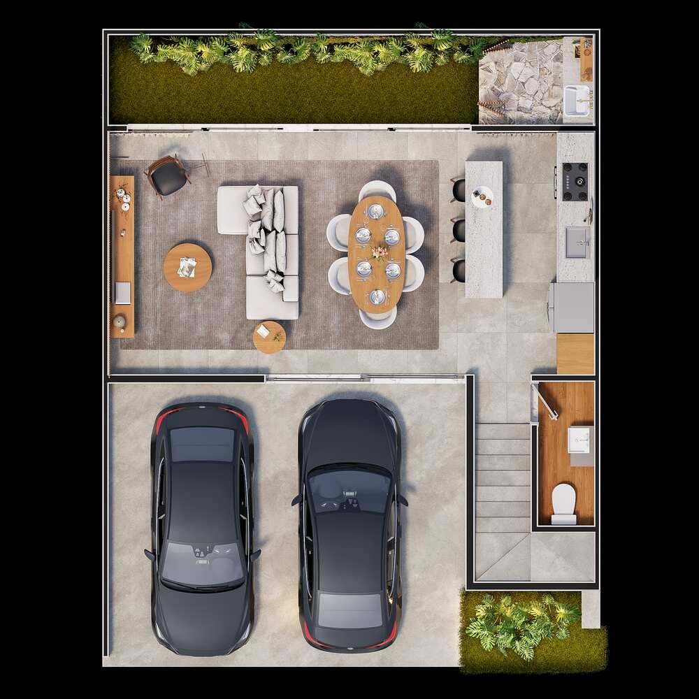 Descrição Casa 149,52²:Térreo com sala de estar e jantar, cozinha, lavabo, área de serviço e garden, bem como churrasqueira integrada e 02 vagas de garagem cobertas. No pavimento superior hall de circulação e 03 suítes, sendo uma máster com closet e varanda.